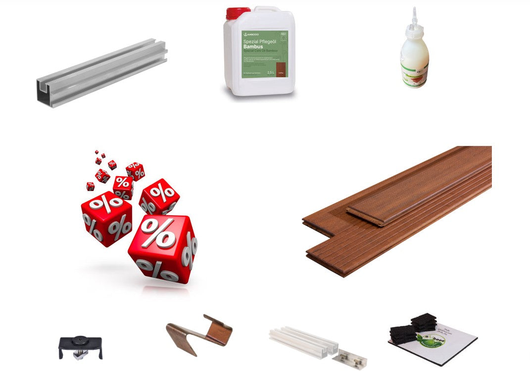 Wichtige Hinweise: Jedes Terrassenprojekt ist einzigartig, jede Montage wird im Detail unterschiedlich ausgeführt. Daher empfehlen wir Ihnen zu prüfen, ob die hier aufgeführten Standardmengen des Zubehörs zu Ihrer individuellen Bambus-Terrassenplanung passen. Ein Mehrbedarf kann natürlich separat im Shop zu diesen Paketen hinzubestellt werden. Metallwinkel für die Befestigung der Unterkonstruktion auf zB Betonplatten die ggf. Benötigt werden, sind in diesen Paketen nicht enthalten. Die aufgeführte Menge der Unterkonstruktion berücksichtigt nicht den Mehrbedarf, der bei einer schwimmenden Verlegung mit Rahmen und/oder einer Querverstrebung erforderlich ist. Die in diesen Fällen erforderlichen Multiecken müssen separat zum Set hinzubestellt werden. Bei der angegebenen Menge der Terrassendielen ist kein Verschnitt berücksichtigt.